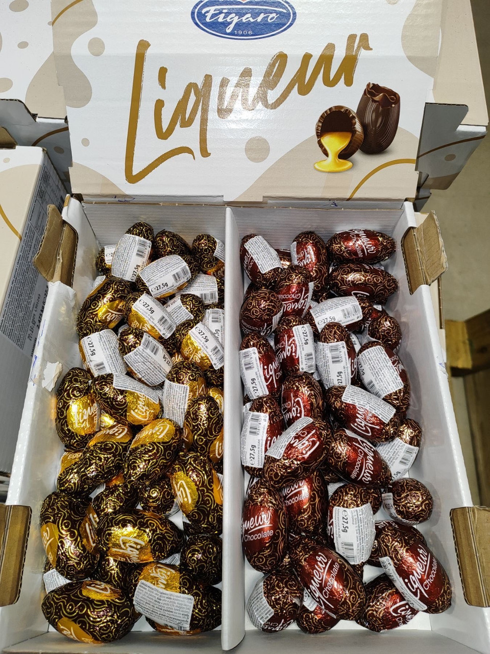 У нашому магазині Evropeika можна купити й інші цукерки. Чеські шоколадні цукерки Figaro продаються ящиками та поштучно. Можна придбати пару штук на подарунки.У такій ящику 90 не містять хімії яєць Figaro.Вартість шоколадних цукерок Figaro - найнижча по Україні. Виробник - чеська компанія Figaro - є всесвітньо визнаним виробником якісних європейських солодощів.