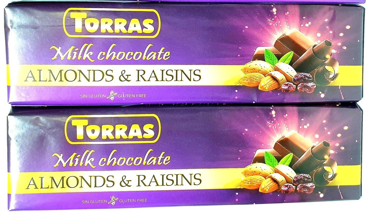 Молочний шоколад з мигдалем та родзинками, представлений відомим іспанським брендом Торрас – це високоякісний продукт, який не містить глютена, виготовлений із ретельно відібраних інгредієнтів.